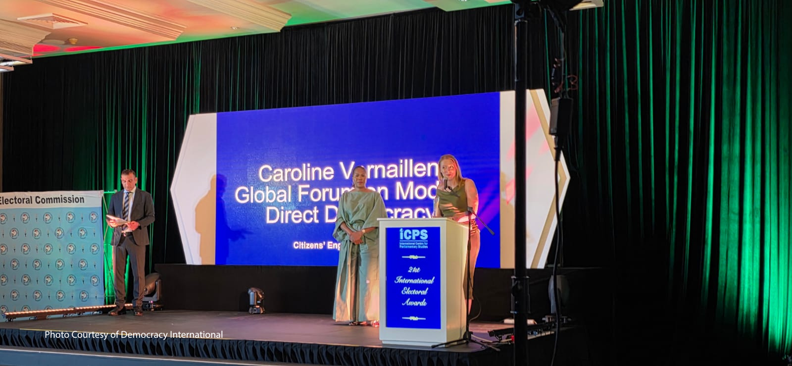 Democracy International's Caroline Vernaillen and the Global Forum on Modern Direct Democracy took home a top award for civic engagement in the world during the International Electoral Awards, held in Gaborone, Botswana, on October 2.