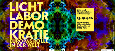 At "LightLab Democracy", art meets participation. Step into an immersive Light and Sound installation at the Kulturbunker Köln-Mülheim, and take part in inspiring panels and hands-on workshops throughout the programme. Meet people from across Europe, exchange perspectives, and explore together what the role of the EU should be in the world — discovering how creativity can turn big democratic questions into collective action.