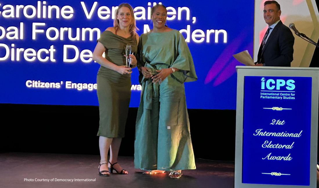 Democracy International's Caroline Vernaillen and the Global Forum on Modern Direct Democracy took home a top award for civic engagement in the world during the International Electoral Awards, held in Gaborone, Botswana, on October 2.
