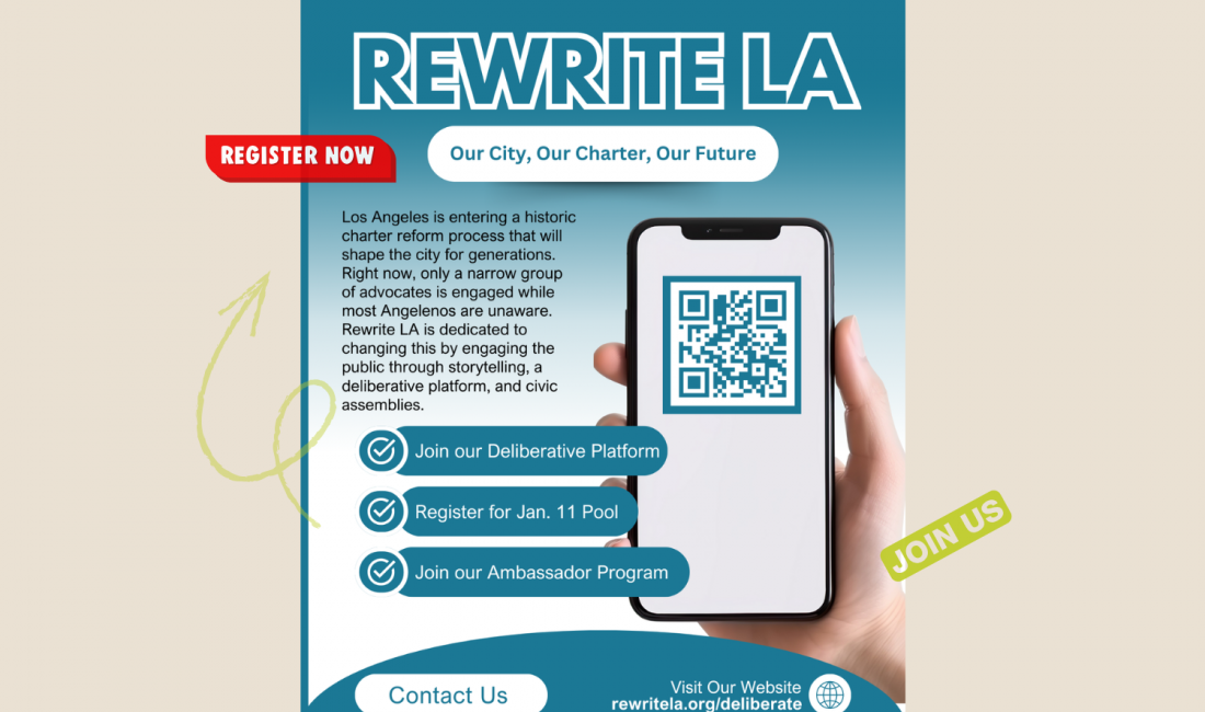 It's a one-day "mini-assembly"—an abridged version of a citizens assembly. And it's the first in a series of events held by Rewrite LA, a coalition that has been asked by the appointed LA Charter Review Commission to bring deliberation and engagement into the charter reform process.
