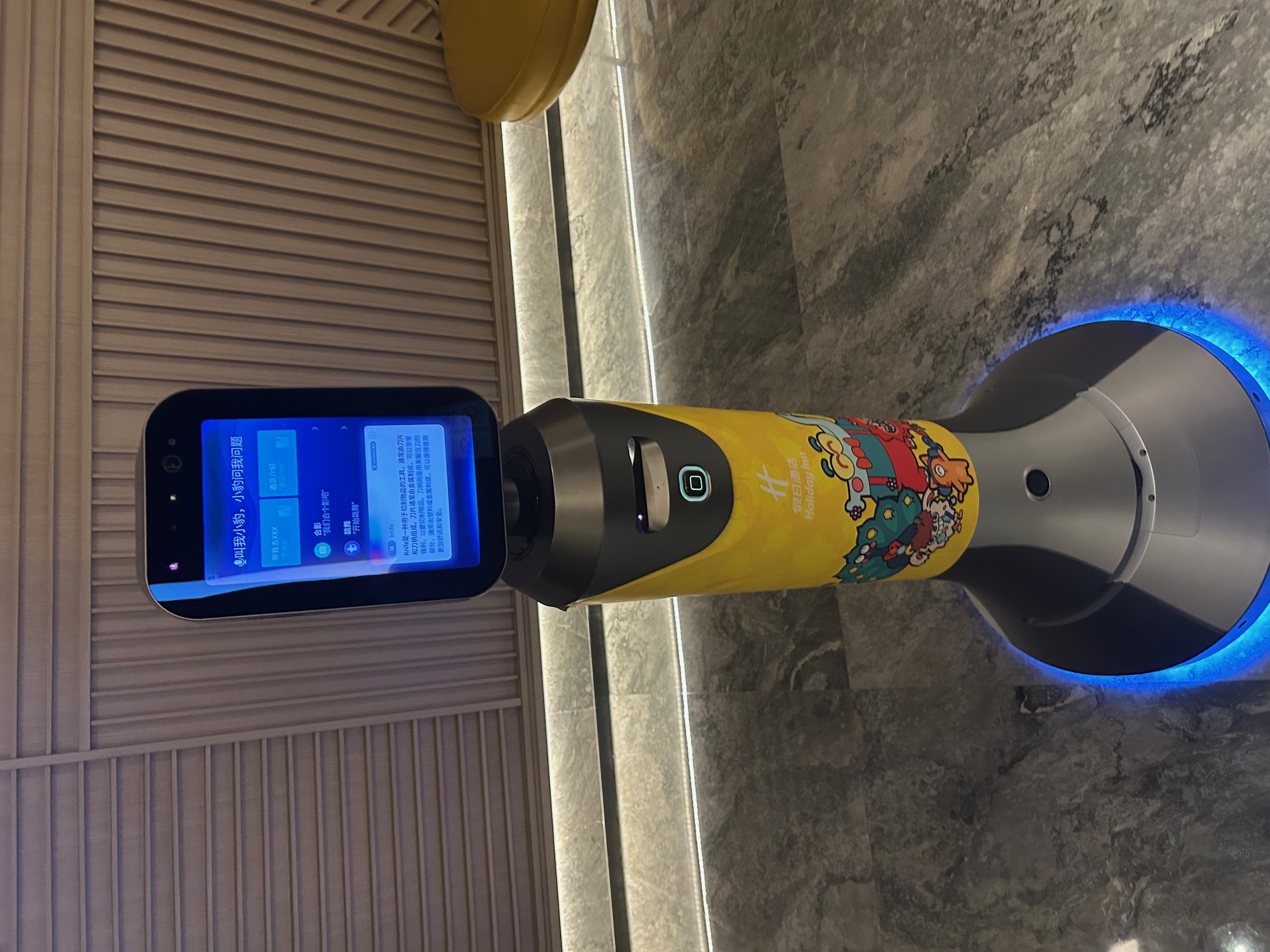 The more controversial of the two robots was called Shou Bot, who ran the lobby in a very loud and hectoring tone. Shou Bot directed people to the elevators and demanded your breakfast ticket on your way into the restaurant. Shou Bot brooked no dissent, rolled into guests, and got into a yelling match with the mayor of a district of a major African city.