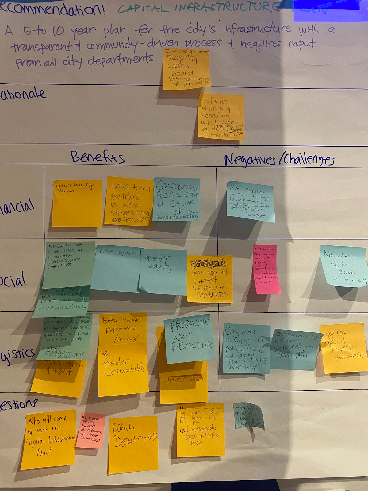 Recommendation 1: A 5 to 10 year plan for the city’s infrastructure with a transparent community-driven process and requires input from all city department